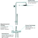 - 因花灑臂長為46.4~47.2cm,淋浴間的深度建議大於110cm
